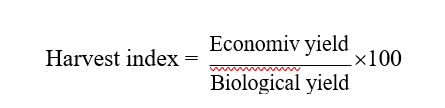 Harvest index (HI) is defined as the ratio of economic yield to total biological yield (Donald and Humblin, 1976) and expressed in percentage. Harvest index was calculated by using the formula,
