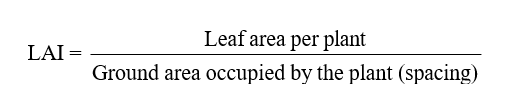 The total leaf area was measured using a Leaf Area Meter (LICOR, Model LI 3000) and the results were expressed as cm2 plant-1. The leaf area index was calculated as follows by employing the formula of Williams (1946).