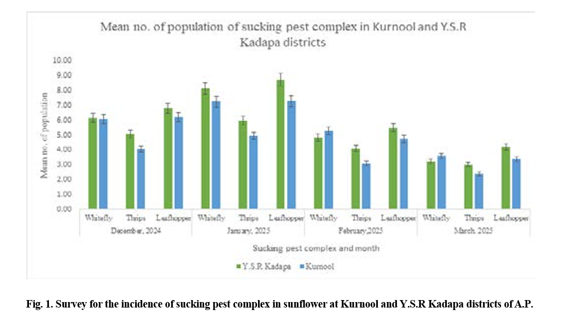 Table 2. Occurrence of sucking pest complex on sunflower in Y.S.R Kadapa and Kurnool district of Andhra Pradesh during rabi, 2024-2025